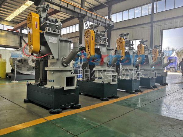 碳酸氫鈉通過失重螺旋喂料稱定量均勻喂料進(jìn)入CAM空氣分級(jí)磨,通過高速旋轉(zhuǎn)的磨塊與齒圈形成碰撞,摩擦,剪切多種作用力下粉碎,粉碎后隨氣流進(jìn)入分級(jí)區(qū),合格的物料通過分級(jí)輪進(jìn)入煙道進(jìn)行反應(yīng),粗料落入粉碎區(qū)繼續(xù)粉碎,顆粒的大小可調(diào)整分級(jí)輪的大小獲得。